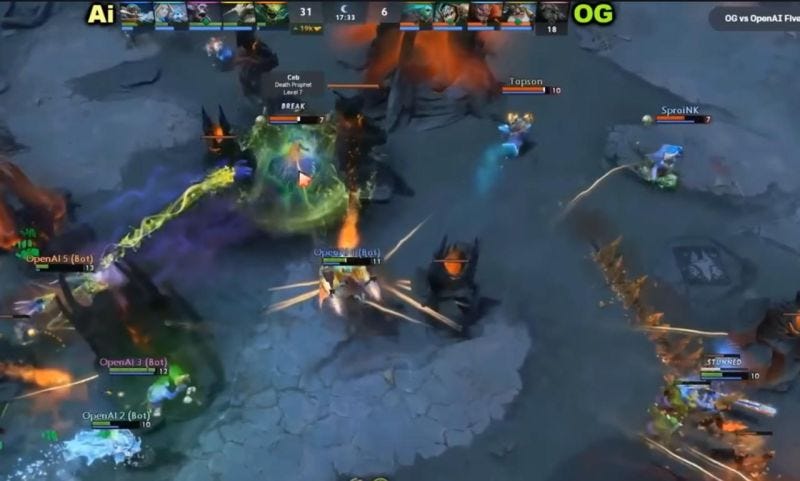 I watched a Dota match between OpenAI and the OG team in 2017. At that time, OG were the best Dota team in the world.